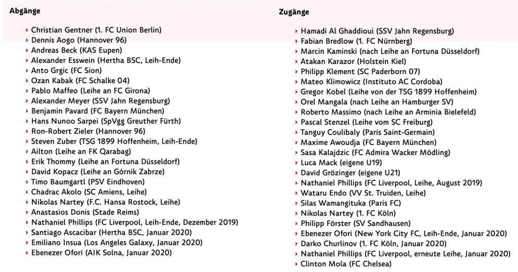 Im vergangenen Sommer war der Abstieg Anlass, einen sehr großen Umbruch in der Mannschaft einzuleiten. Sehr viele Spieler verließen den VfB, neue Spieler wurden verpflichtet und allgemein wurde diese Maßnahme als durchaus notwendig erachtet, schließlich hatten sich die Absteiger nicht mit Ruhm bekleckert, das Vertrauen war dahin. Und so stehen nominell 24 Neuzugängen immerhin auch 23 Abgänge gegenüber. Wenn man bei schlechten Leistungen davon spricht, dass man eigentlich die ganze Mannschaft entlassen sollte, dann kommen wir dem hier schon relativ nahe …